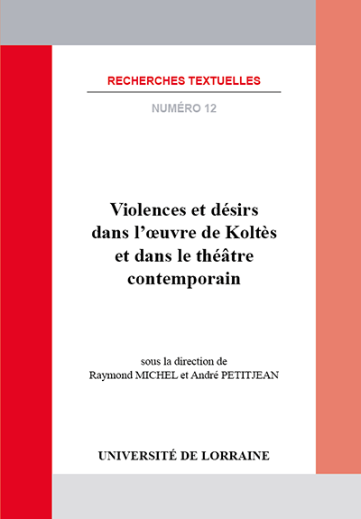 Référence bibliographique : Violences et désirs dans l’Å“uvre de Koltès et dans le théâtre contemporain, Raymond Michel et André Petitjean (dir.), Crem/Université de Lorraine, collection “Recherches textuelles”, 2017. EAN13 : 9782909498287. — 216 pages — Prix : 20 €